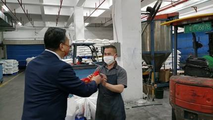 塑料公司属下炜鸿科技、洛民公司等企业也鼓足干劲投入到生产经营中,公司领导班子于2月8日奔赴一线向职工献上祝福,激励大家2022年再接再厉,奋勇创先,全力以赴实现一季度“开门红”!