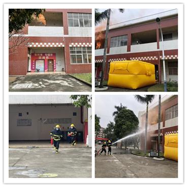 消防应急救援演练:模拟学院内一高层教学楼因电器线路短路引发的火灾事故,学院消防监控室发现房间烟感器联动报警后,立即通知松北安全生产管理办公室,以及立即启动广州大学纺织服装学火灾事故应急处置预案,学院保安组马上使用灭火器进行初期火灾事故的灭火救援。松北安全生产管理办公室接报校园的警情后集中着装,并迅速驾驶消防摩托车前往火灾现场接驳水源、消防摩托车加压对火灾事故点进行灭火救援。过程中,因火灾楼层逃生(通道)被火围堵不能正常逃生,马上设置逃生气垫进行模拟逃生救援。经过及时的灭火救援行动,最终扑灭灭灾事故点火情,避免人员伤亡财产损失。