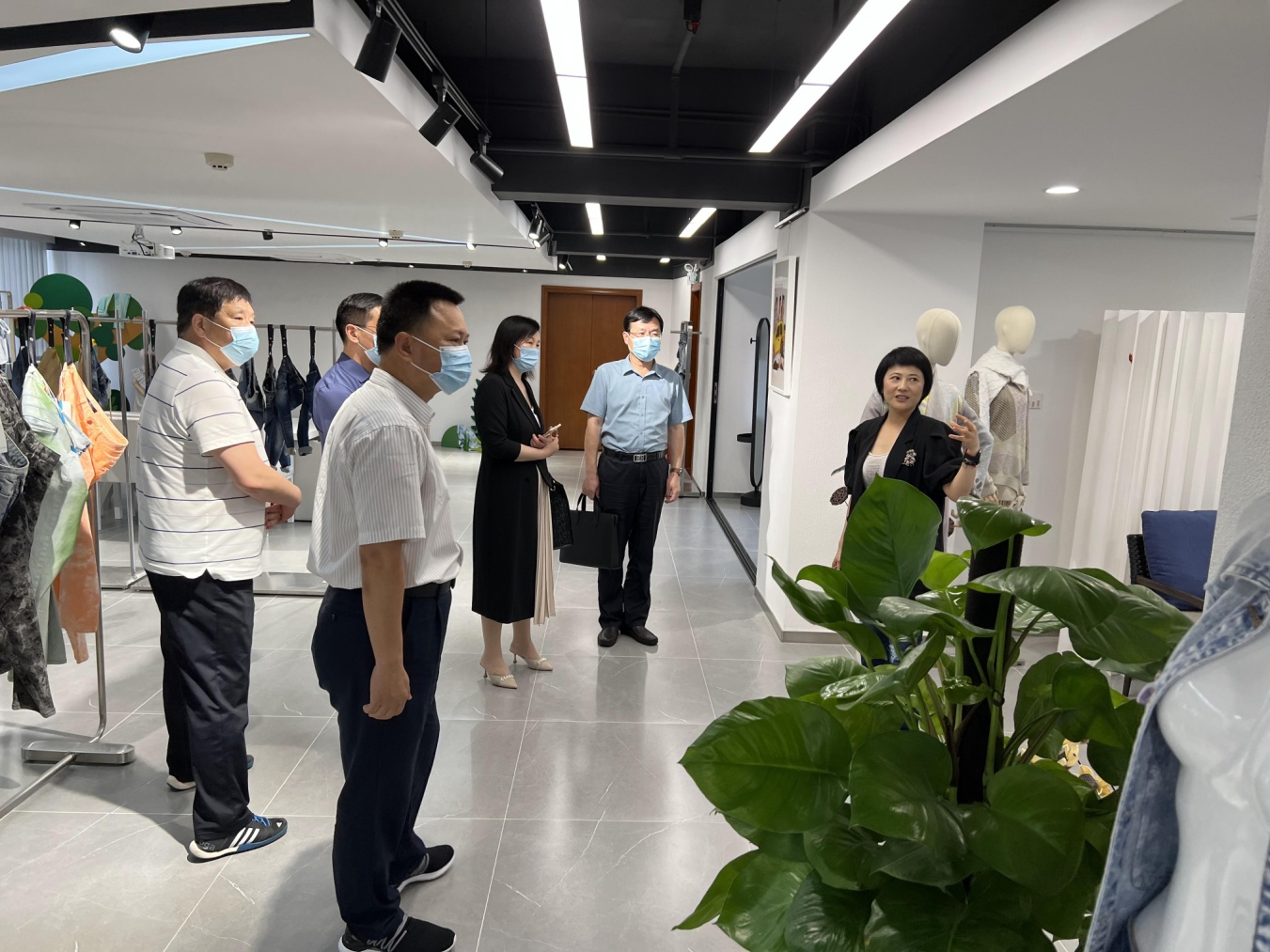 来访领导还参观了8楼展厅,纺出公司副总经理张菁介绍了牛仔服、时尚女装、毛衫、针织、童装等五大类服饰产品及自主设计的家具用品,让来访领导更为直观地了解公司产品和公司品牌情况。