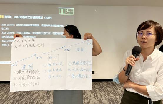 培训邀请了TTT培训专家、商务演讲专家张熳老师授课。她从日常的企业沟通场景进入培训主题,通过设置丰富的教学案例和系列互动环节,引发学员思考,实现教学同频,极大调动了学员的积极性,大部分学员都进入了“沉浸式”学习,课堂气氛十分活跃。