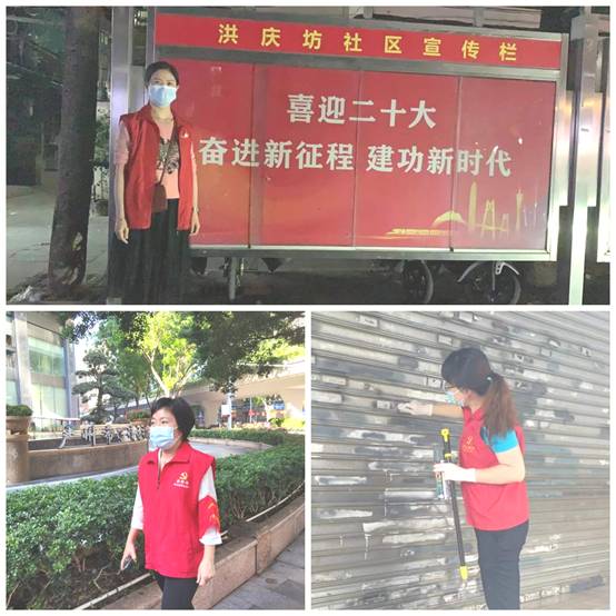 众博在线客服企业发展部副部长严婷、工会经理吴丽蝶参与洪桥街社区平安巡逻;团委书记梁晨协助清理社区商铺牛皮藓