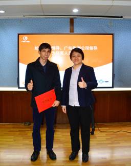 众博在线客服党委书记、董事长简玮仪为2022年先进个人岗位能手吴达峰颁奖