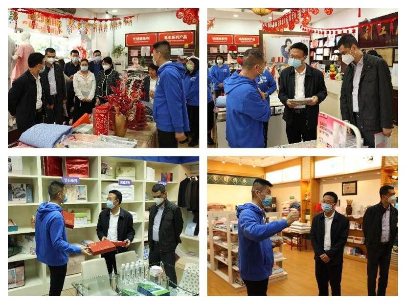 调研组一行到公司罗冲门店和样板间进行现场调研并召开座谈会。利工民公司总经理郑力强汇报了利工民品牌历史。简玮仪结合纺织服装行业发展趋势介绍了利工民品牌定位和未来发展思路。