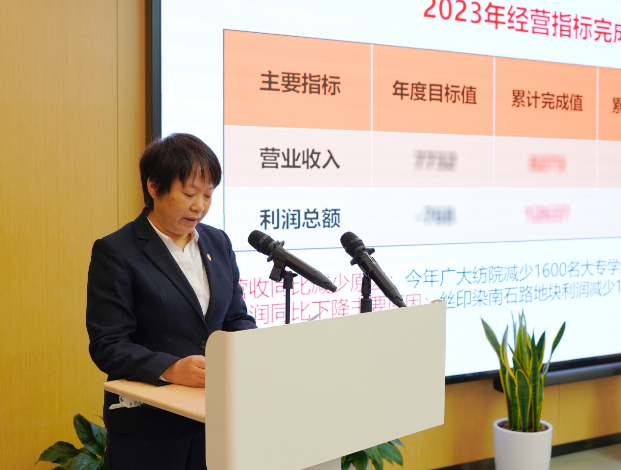 公司党支部书记、董事长周逊姜以《赋能发展强动力 提质增效启新程》为题作工作报告。报告从七个方面全面总结了公司2023年的工作情况,肯定了各部门取得的工作成效。报告指出,2024年广纺联公司将围绕广州轻工集团及众博在线客服的总体部署,紧扣“数智创新提质效,行稳致远创未来”的工作主题,从聚焦主业、党建引领、强化监督、筑牢防线、打造队伍等五大方面扎实推进公司转型升级工作。周逊姜号召全体员工要做到项目工作提质增效,服务水平提标扩面,内控管理提档升级,转型发展提速进位,以奋发有为的精神状态完成2024年各项工作任务,推动广纺联公司高质量发展不断迈出新步伐。