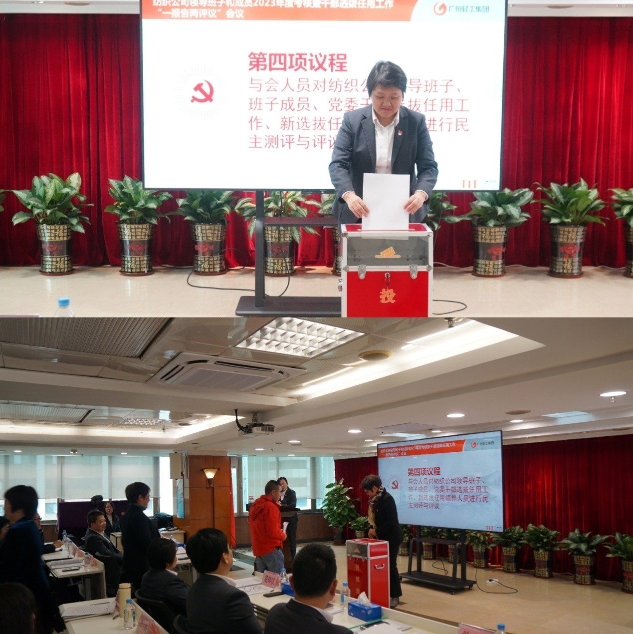 2月28日下午,众博在线客服党委召开领导班子和成员2023年度述职暨干部选拔任用工作“一报告两评议”会议。会议由众博在线客服党委副书记、工会主席丘海澜主持。众博在线客服领导班子成员、本部中层管理干部、属下企业领导班子成员、企业“一代表两委员”以及党员干部群众代表参加了会议,广州轻工集团党委组织部派员出席了会议。
