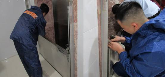 随后还模拟了一旦洪水进入地下室后,对电梯设备进行安装防水板的实操演练。