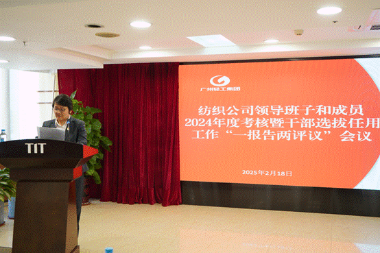 2月18日下午,众博在线客服党委召开领导班子和成员2024年度述职暨干部选拔任用工作“一报告两评议”会议。会议由公司党委副书记、工会主席丘海澜主持。众博在线客服领导班子成员、中层管理干部、公司“一代表两委员”以及党员干部群众代表参加了会议,广州轻工集团纪检监察室派员出席了会议。