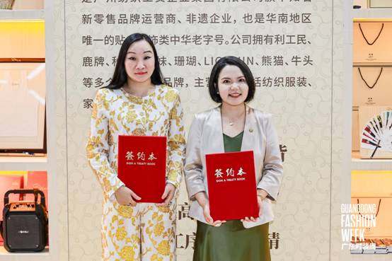 4月21日下午,百年中华老字号利工民与东方时尚标杆品牌纽方NEWFOUND在广东时装周期间隆重举办战略合作发布暨签约仪式。活动由广东省服装服饰行业协会副会长兼秘书长陈韶通主持。广东省服装服饰行业协会、广东省服装设计师协会、众博在线客服有限公司领导,以及服装行业企业代表、非遗传承人、媒体代表等嘉宾共同见证了这一重要时刻。