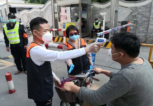 2月23日,党员麦永光主任响应公司党总支的号召,参加了顺意、海棠小区的志愿者防疫行动,对顺意、海棠小区的居民进行出入测温。