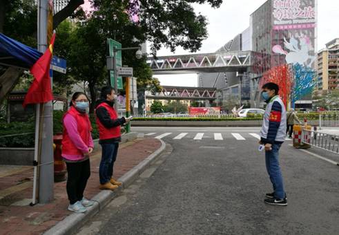 2月16日,党员王玥响应单位的号召,参加了穗花北社区的志愿者防疫行动,对穗花北社区的出入居民进行测温。